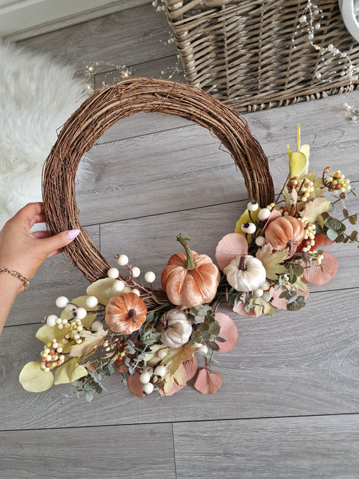 Rustic Autumnal Foliage Pumpkin Seasonal Decorative Willow Wreath