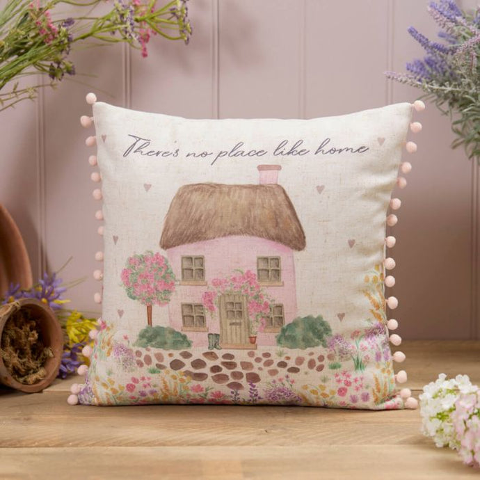 No Place Like Home Cosy Pink Cottage Pom Pom Cushion